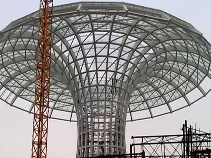 二、球形网架结构因其结构新颖,受力合理,自重轻、用钢量低等优点。如大型体育场馆球形九江螺栓球网架、公共场馆球形网架、电厂九江螺栓球网架、水泥工业球形网架、仓储物流球形网架、九江干煤棚工业球形网架、九江收费站九江加油站球形网架、展览中心、影剧院、商场、航站楼、候车厅、工厂九江车间、仓库、电视塔等球形螺栓球节点网架。国内球形网架结构主要分为:九江焊接球节点网架及螺栓球节点网架两种。螺栓球节点网架其构件工厂内加工量较大,现场安装便捷,适用于现场工期紧,九江施工条件、用电量受制约,网架形状复杂、九江杆件定位困难的异形结构。螺栓球节点球形网架系统基本由九江杆件、螺栓球、支撑支座等组成。按照节点形式可分为交叉九江桁架体系、四角锥体系、三角锥体系等。支撑方式多为固定支座支撑。对于大面积、大跨度及有特殊受力或伸缩要求的网架结构可采用橡胶支座、滑移支座、球铰支座等支撑形式,以满足结构自身的受力稳定、均衡,便于内力释放等设计要求。